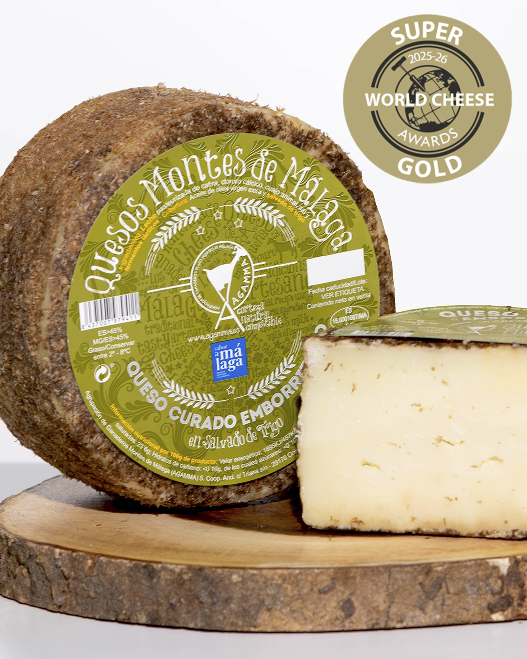 Queso Curado con una maduración de 5 a 6 meses. Elaborado con leche cruda de cabra de raza mayoritariamente malagueña y madurado en aceite de oliva virgen extra de variedad verdial del Parque Natural de los Montes de Málaga durante sus dos últimos meses de curación. Tiene un sabor salado medio y amargo muy suave, con un toque picante y una persistencia larga en el paladar.