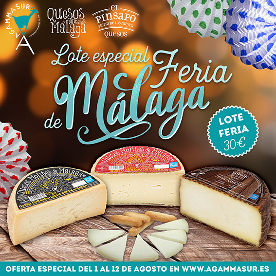 Hemos creado un lote especial Feria de Málaga. Por tan sólo 30 € (IVA incluido) podrás disfrutar de: medio Queso Curado de Cabra Montes de Málaga (peso 430 g. aprox), medio Queso Curado de Leche Cruda de Cabra Montes de Málaga (peso 450 g. aprox) y medio Queso Semicurado de Cabra al Vino Dulce Pedro Ximénez El Pinsapo (peso 490 g. aprox).