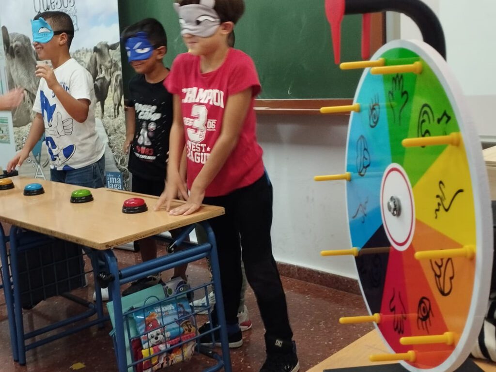 Un divertido juego, al estilo de un emocionante concurso televisivo en el que ponían a prueba sus sentidos. Gracias a una ruleta, los niños y niñas competían en cada ronda por uno de los 5 sentidos (vista, oído, olfato, gusto y tacto) con divertidas pruebas.
